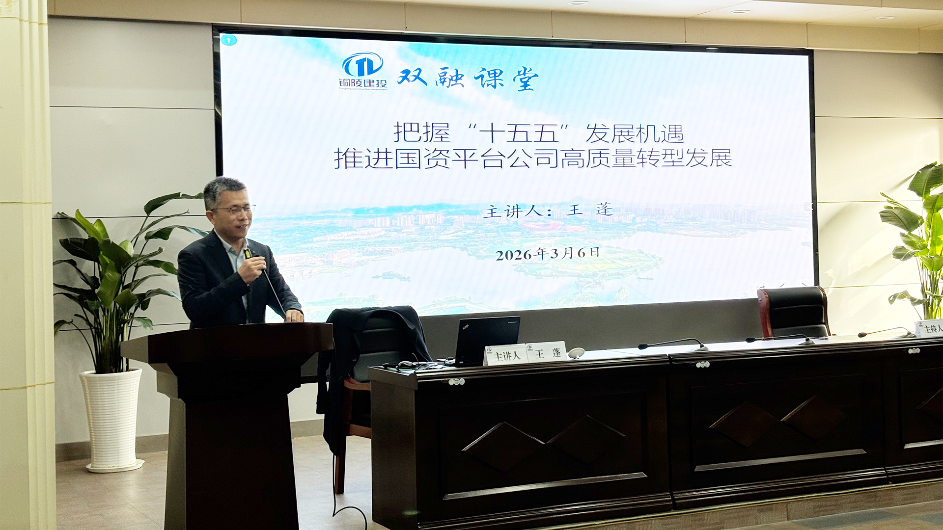 近日,铜陵市建设投资控股有限责任公司(下称“铜陵建投公司”或“公司”)成功举办2026年第二期“双融讲堂”。公司党委副书记方宝主持会议,公司领导班子成员、中层干部、各子公司班子成员及员工代表参加。中国城市发展研究会碳专委副会长、南京方达咨询总经理王蓬受邀出席活动并进行专题授课。